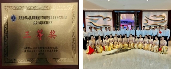 为庆祝中华人民共和国成立76周年暨新疆维吾尔自治区成立70周年,近日,新疆律师协会直属分会举办“传承红色基因,凝聚法治力量”红歌比赛,我所联合上海汉盛(乌鲁木齐)律师事务所、新疆新纪元律师事务所、新疆美愿律师事务所积极组队参赛,并凭借精彩表现荣获比赛三等奖。